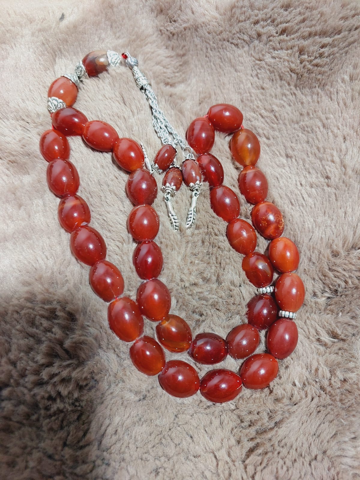 Experience the serene beauty and spiritual benefits of our Cherry Agate Tasbih, a handcrafted piece that is perfect for meditation, prayer, and daily use. Each bead is meticulously crafted from cherry agate, known for its calming properties and elegant appearance.