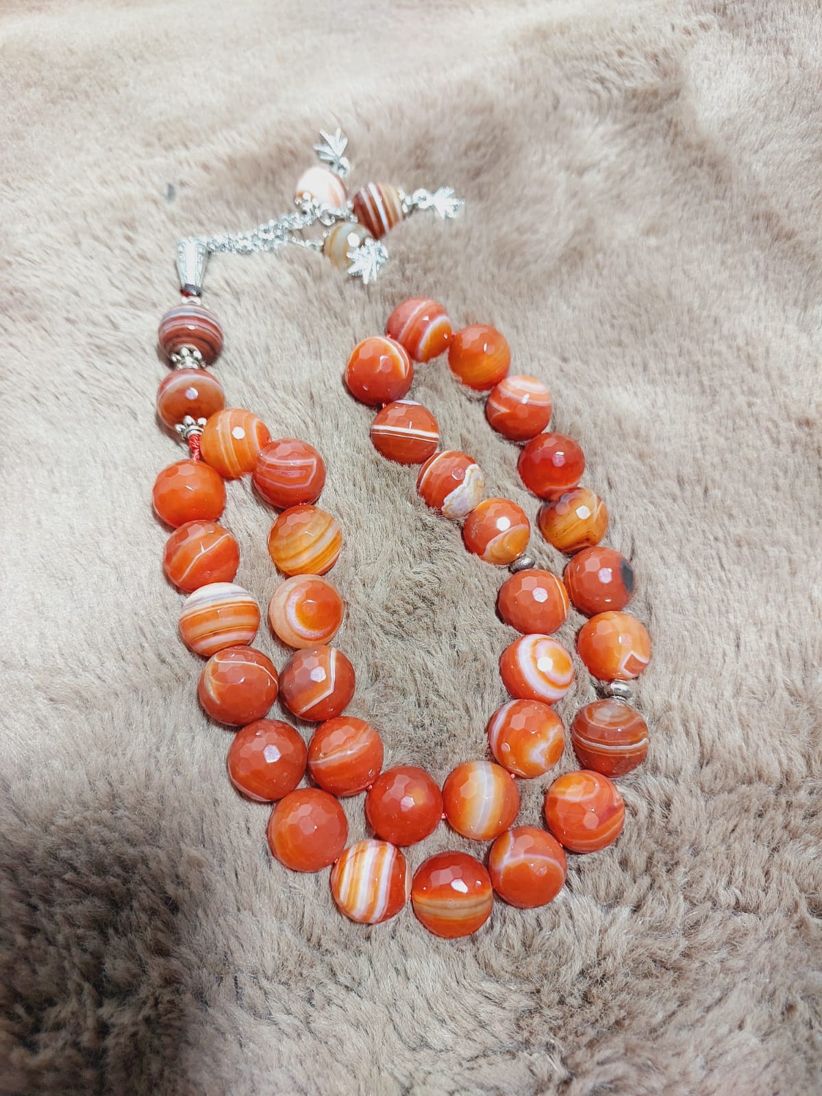 Saffron Agate Tasbih – 33 Beads, Handcrafted Prayer Beads for Meditation, Spiritual Energy, and Daily Use, Elegant Design